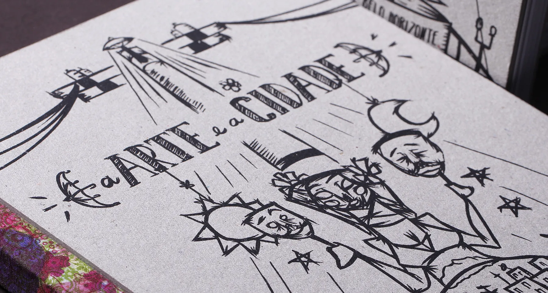 Illustration created for a book cover on street theatre in Belo Horizonte. At the request of the client (Fundação Municipal de Cultura – Belo Horizonte City Hall), the design was meant to engage with urban expressions and popular folk aesthetics. The result is influenced by graffiti and traditional Brazilian woodcuts. Semantically, the concept positions the street as the stage and the lamppost as the spotlight.