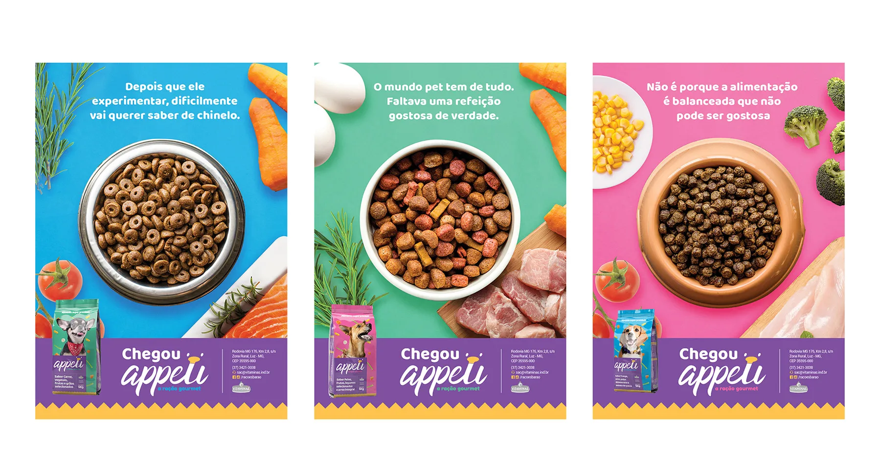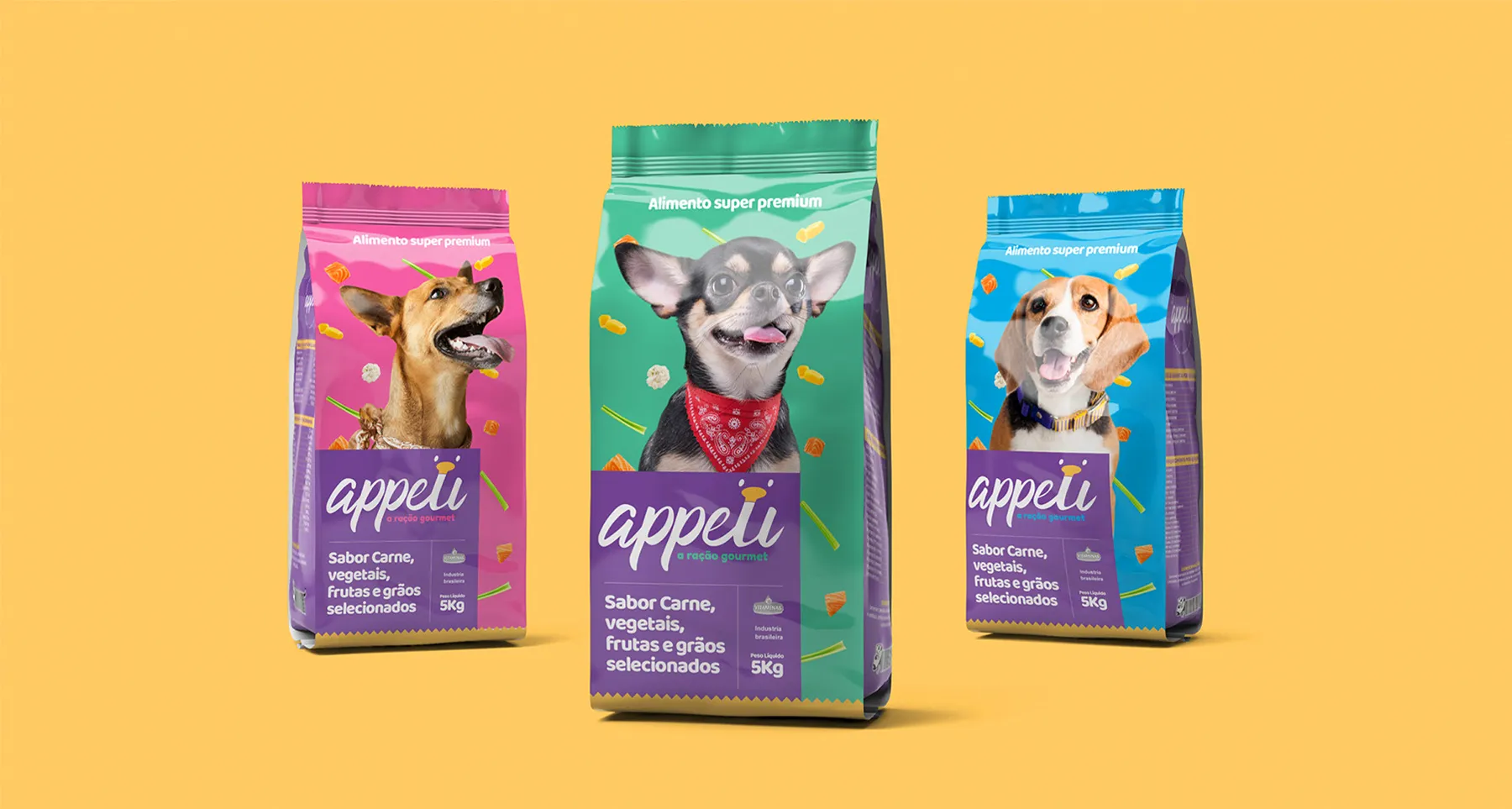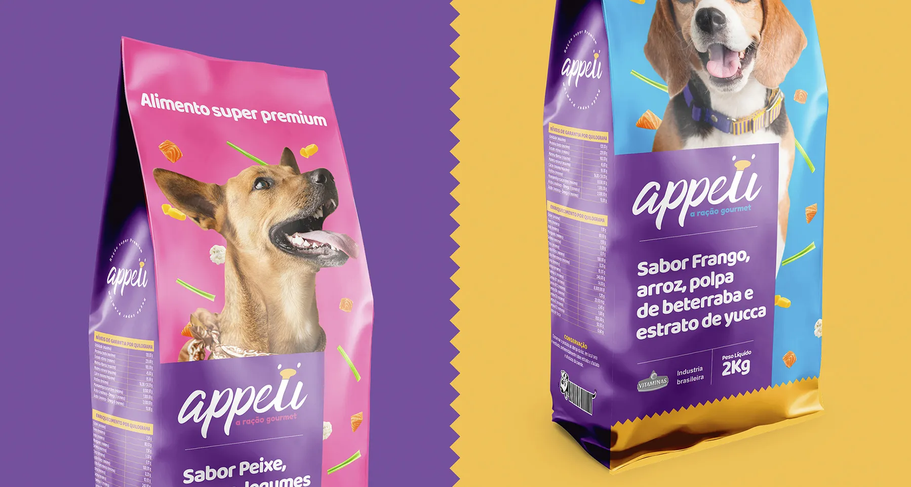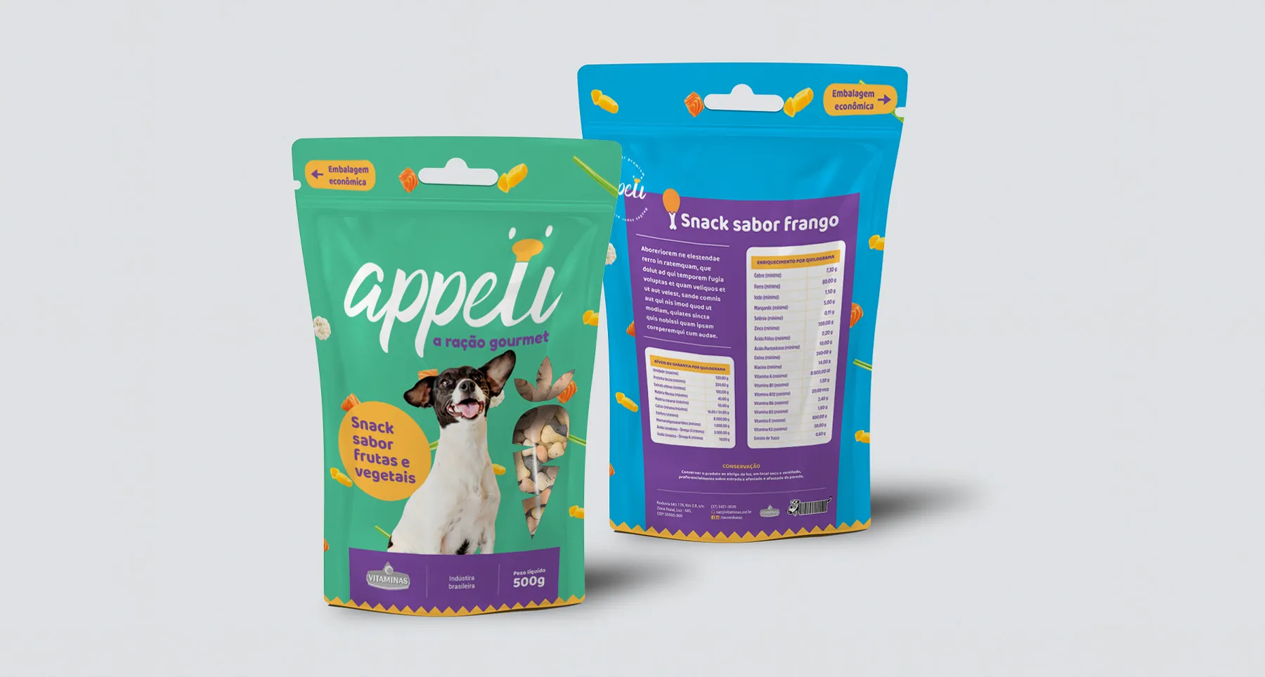 Development of the graphic direction for gourmet animal food of the Vitaminas brand.